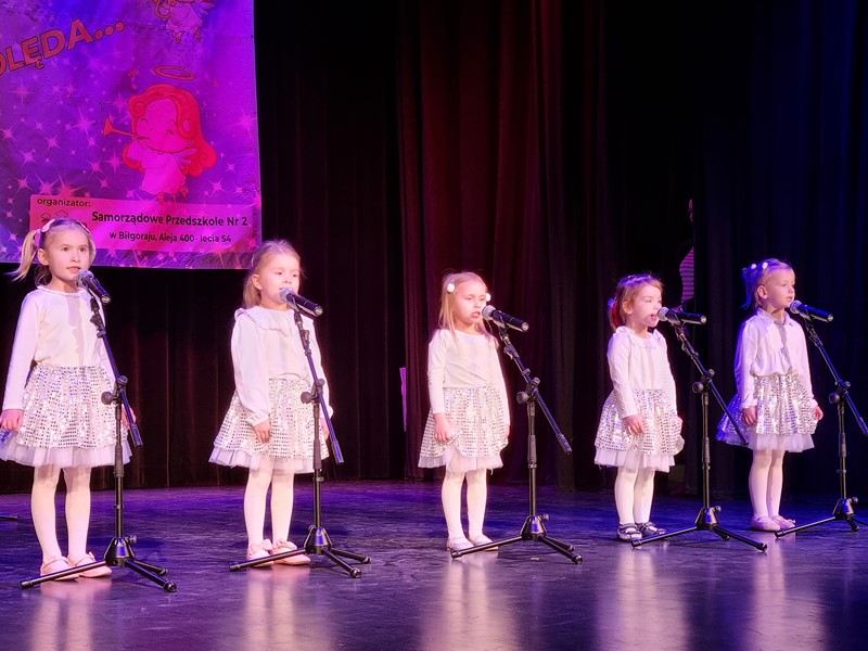 12 stycznia w Biłgorajskim Centrum Kultury odbył się Międzyprzedszkolny Przegląd Kolęd organizowany przez Samorządowe Przedszkole Nr 2. Dzieci śpiewały zarówno kolędy jak i pastorałki świąteczne. Nasze przedszkole reprezentowały: