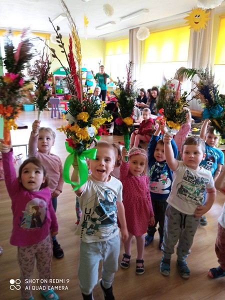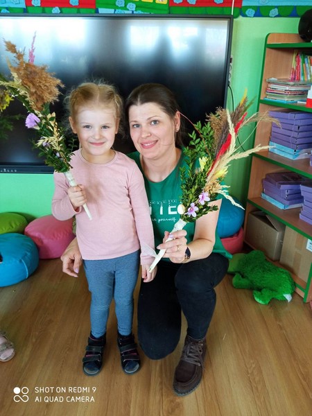 W czwartkowe popołudnie, tuż przed Niedziela Palmowa Słoneczka zaprosily swoich rodziców na warsztaty. Z przyniesionych pomocy: różnorodnych gałązek, wstążek, bibułkowych kwiatków rodzice z pomocą swoich pociech wykonali piękne palmy. Warsztaty wzbudziły w dzieciach wiele pozytywnych emocji i pozwoliły na przybliżenie tradycji związanych ze świętami Wielkanocnymi. Dziękujemy rodzicom za zaangażowanie.