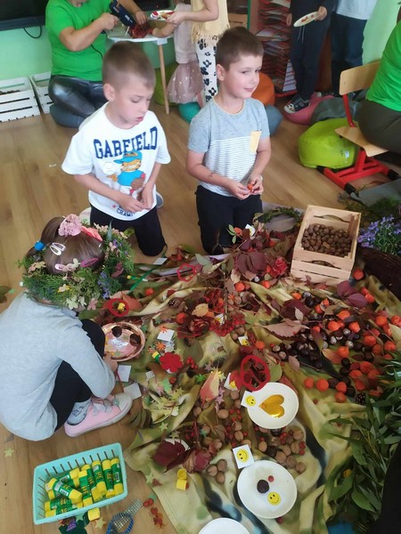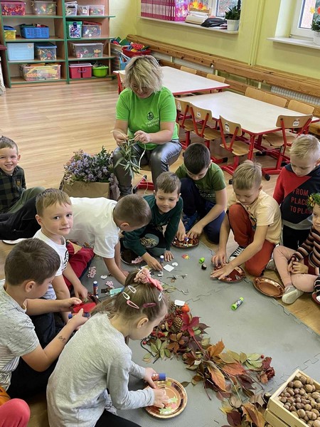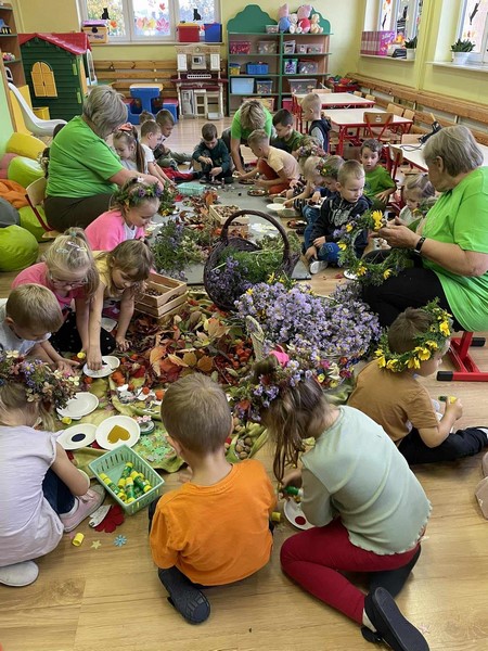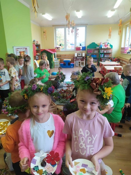 Dzięki firmie Faktoria Natury dzieci mogły uczestniczyć w pięknych warsztatach gdzie z pomocą Pań prowadzących warsztaty zrobiły piękne jesienne wianki.