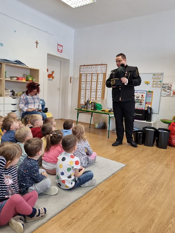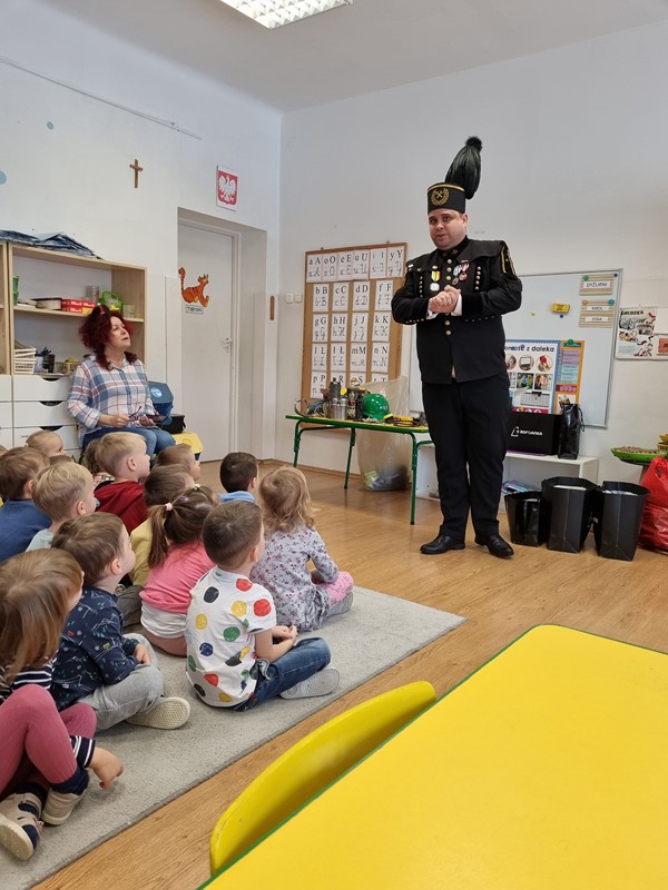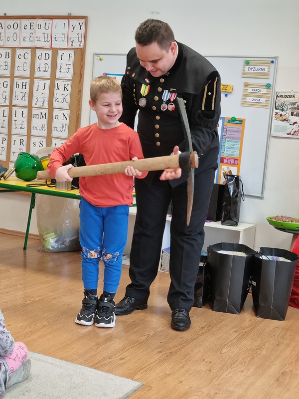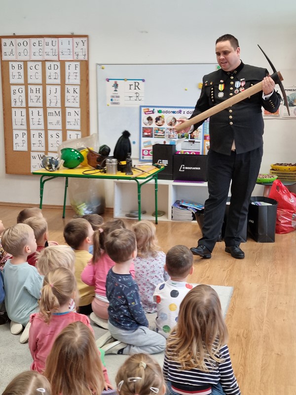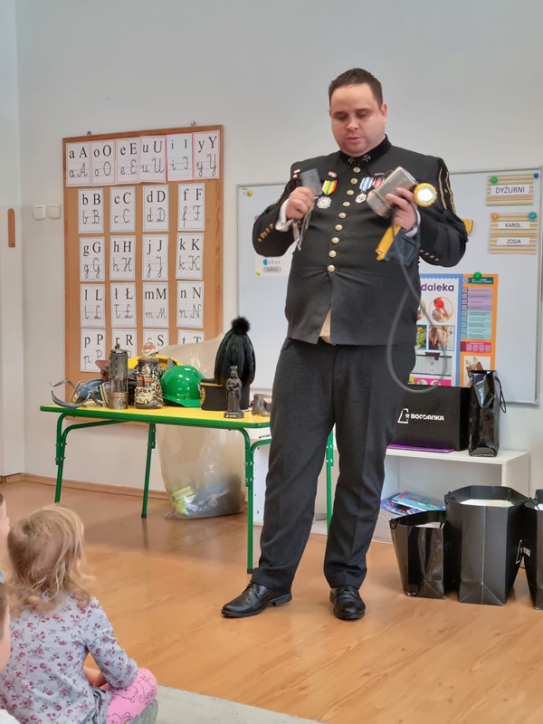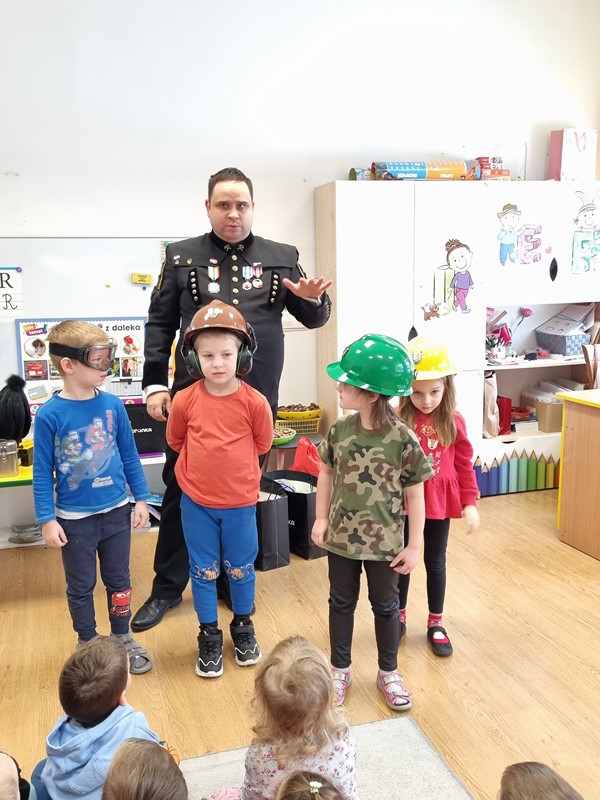 Dzisiaj nasze przedszkole odwiedził wyjątkowy gość. Był to Pan Artur Słabosz, górnik z Kopalni Węgla Kamiennego w Bogdance. Dzieci miały okazję zobaczyć sprzęt, który wykorzystywany jest podczas pracy pod ziemią, poznały strój galowy, jakiego koloru są pióropusze przy czapce oraz dowiedziały się wielu innych ciekawostek. Bardzo dziękujemy za tak wspaniałą lekcję oraz upominki dla naszych przedszkolaków.