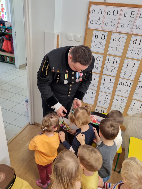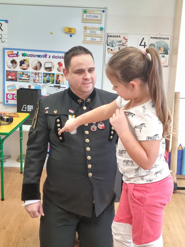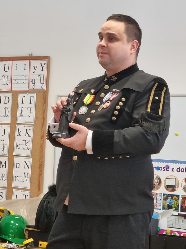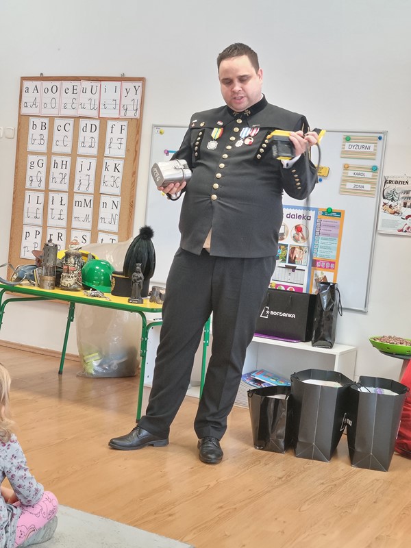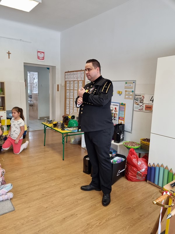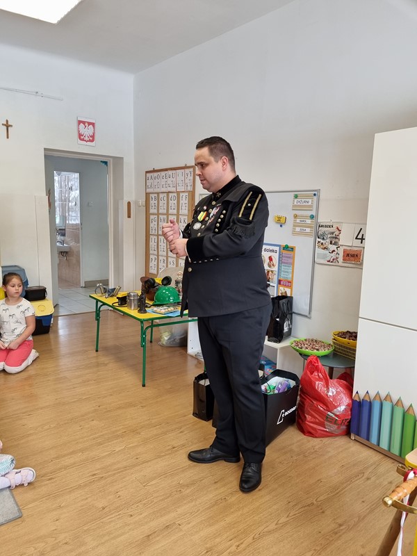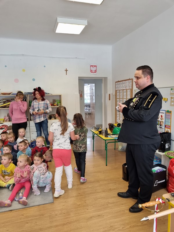 Dzisiaj nasze przedszkole odwiedził wyjątkowy gość. Był to Pan Artur Słabosz, górnik z Kopalni Węgla Kamiennego w Bogdance. Dzieci miały okazję zobaczyć sprzęt, który wykorzystywany jest podczas pracy pod ziemią, poznały strój galowy, jakiego koloru są pióropusze przy czapce oraz dowiedziały się wielu innych ciekawostek. Bardzo dziękujemy za tak wspaniałą lekcję oraz upominki dla naszych przedszkolaków.