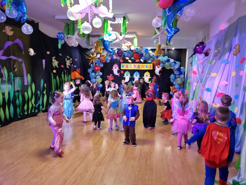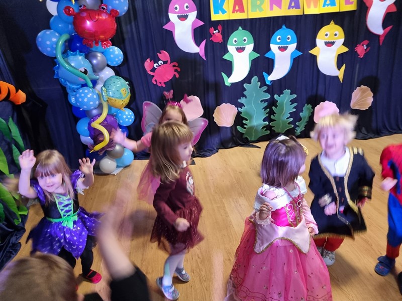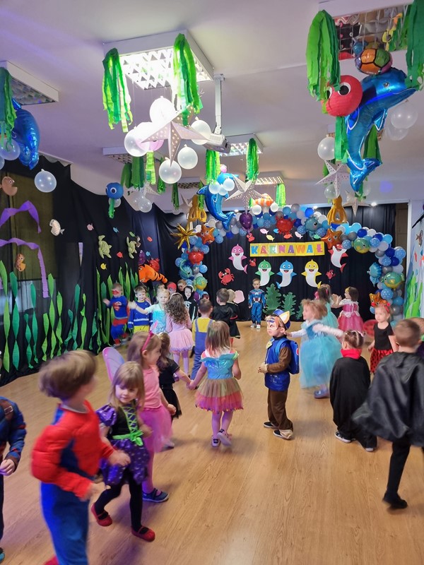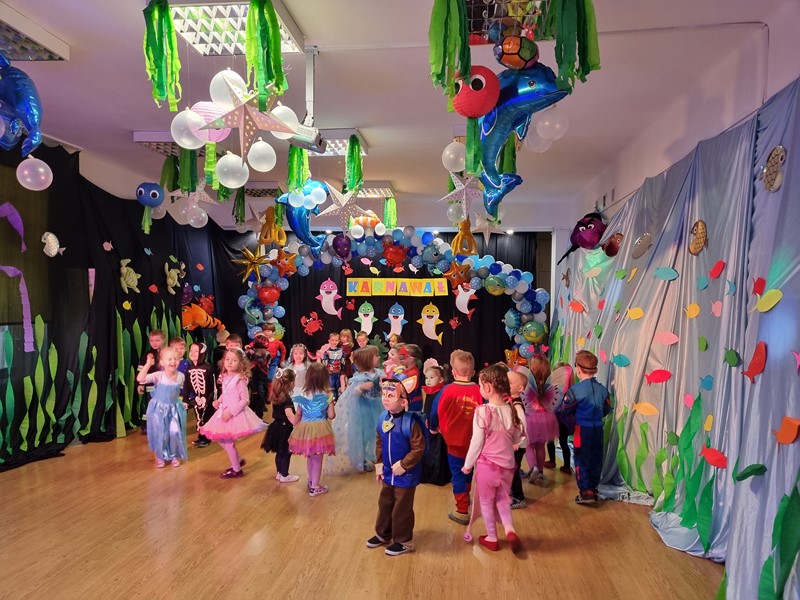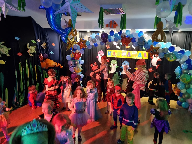 24 stycznia w naszym przedszkolu odbył się bal karnawałowy. Tematem przewodnim był ocean, co było pięknie wyeksponowane w dekoracji sali zabaw. Dopełnieniem były piękne stroje przygotowane przez rodziców naszych przedszkolaków. Nie mogło też zabraknąć słodkiego poczęstunku.