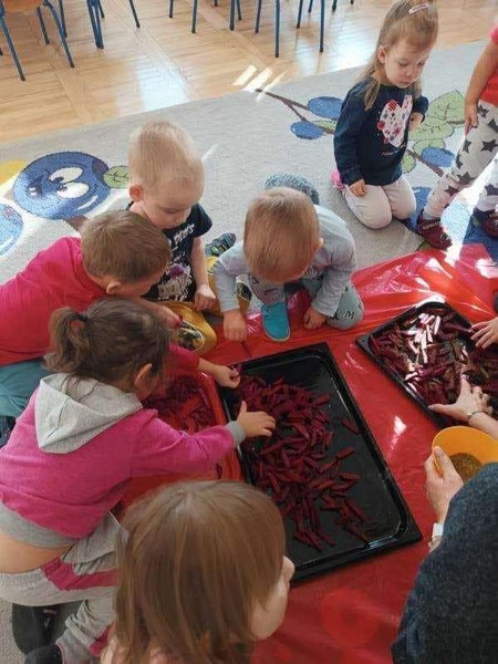 SKRZATY w tym roku szkolnym realizują projekty edukacyjny " Witaminki" każdego miesiąca poznajemy nowe warzywko, dzieci poznały już wlory smakowe i odżywcze dyni, buraczka czerwonego, brokuła, cebuli, papryki