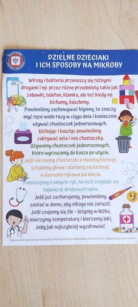 Dzisiaj nasze najmłodsze przedszkolaki realizowały zajęcia edukacyjnej z zakresu higieny i profilaktyki zdrowotnej " Dzielne dzieciaki i ich sposoby na mikroby"![]()