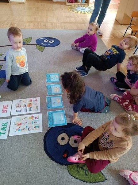 Jak zawsze były zabawy dydaktyczne, grafomotoryczne, pokazy, opowiadanie i tańce. Przedpołudnie było zatem pracowite, ale bardzo edukacyjne