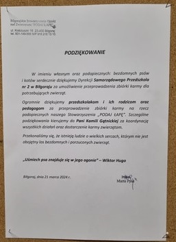 Po raz kolejny nasze przedszkolaki i ich rodziny pokazały, że można na nich liczyć. Pięknie dziękujemy za karmę i zabawki dla kociaków i psiaków z Biłgorajskie Stowarzyszenie Opieki Nad Zwierzętami "Podaj Łapę". Dobro zawsze powraca