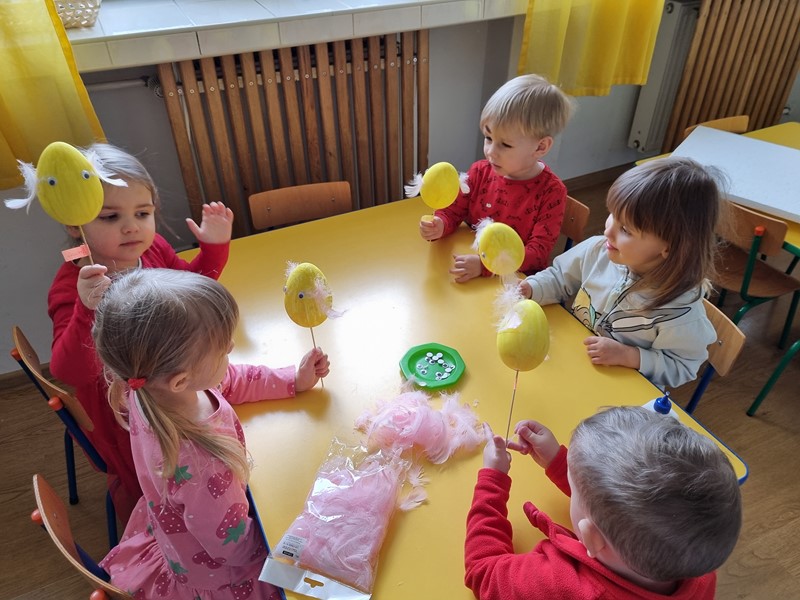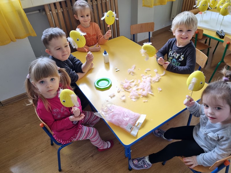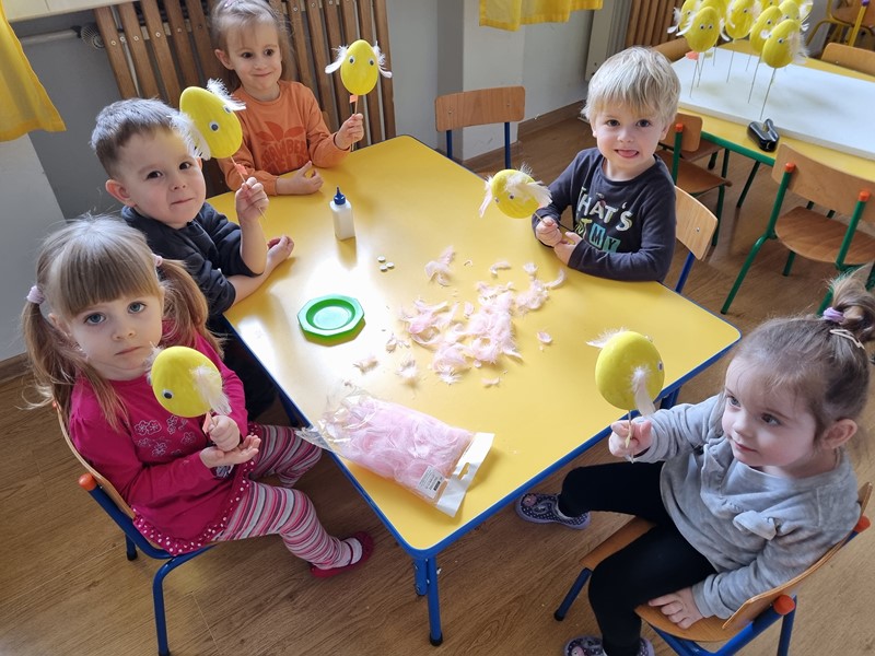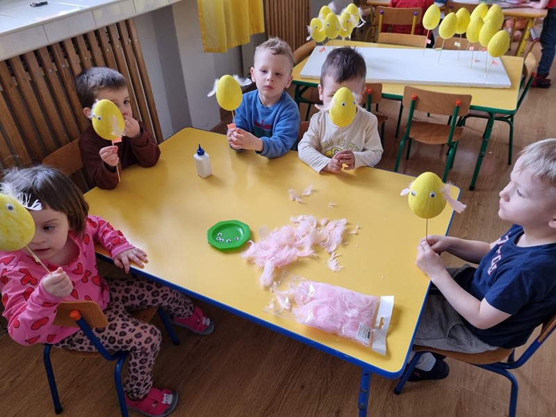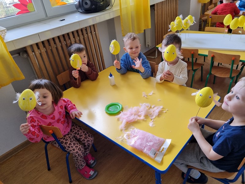 Dzieci z grupy Motylki przygotowały na święta piękne kurczaczki, które będą zdobić ich świąteczny stół.