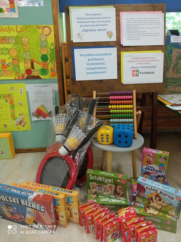 Celem projektu było doskonalenie umiejętności matematycznych dzieci, logicznego myślenia, wyzwalania twórczej postawy poprzez czynnościowe, aktywne uczenie się matematyki. W ramach projektu zaplanowano następujące działania: szkolenie dla nauczycieli, zakup pomocy dydaktycznych, praktyczne zajęcia dla dzieci z grup Słoneczka i Liski z wykorzystaniem różnorodnych metod, zorganizowanie gry terenowej na "Dzień matematyki", przeprowadzenie konkursu matematycznego, wycieczkę do PCN "Łukasiewicz". Otrzymaliśmy maksymalny grant w wysokości 5000 zł na realizację zaplanowanych przez nas działań.