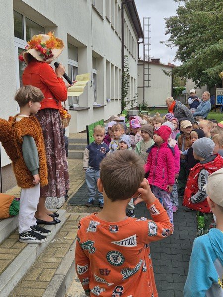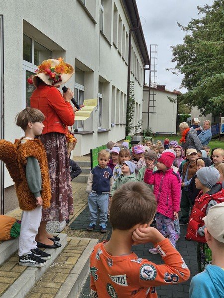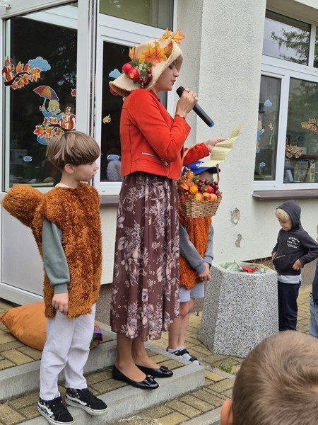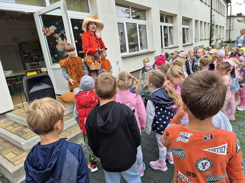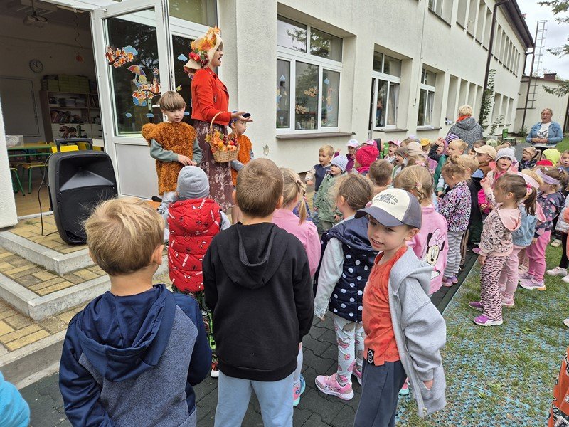 23 września zawitała do nas Pani Jesień. Przedszkolaki powitały gościa piosenką, którą przygotowały specjalnie na tę okazję. Pani Jesień miala dla dzieci kosz pełen zagadek, a także ciekawe zadania sportowe, z którymi przedszkolaki świetnie sobie poradziły.