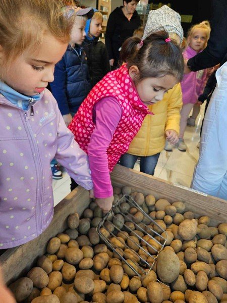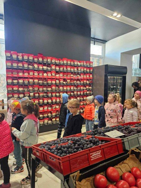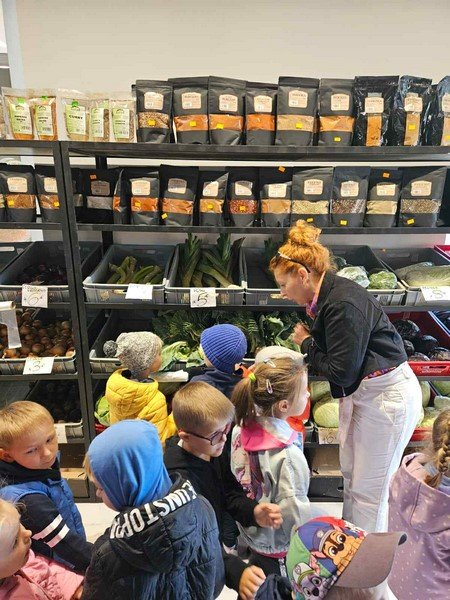 W tym tygodniu rozmawiamy o jesieni w ogrodzie, dzieci przyniosly własne warzywa o których opowiedziały, przeliczaly, klasyfikowały, a dziś... mogły zobaczyć warzywa pod postacią suszoną, past warzywnych, ziaren, syropów itp... Zaobserwowały również różne odmiany warzyw i owoców, np. ziemniaków , kapusty, jabłek, śliwek. To było bardzo interesujące wyjście.