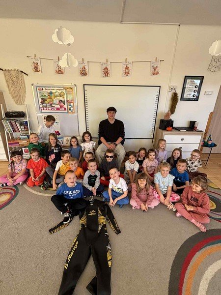 Naszą grupę odwiedził wyjątkowy gość – pan Damian Błaszczyk, pływak długodystansowy, który tego lata pokonał aż 100 kilometrów w 44 godziny, niosąc pomoc potrzebującemu dziecku.