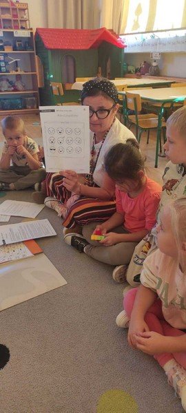 Zajęcia z Panią Anią - pedagogiem specjalnym, które przeprowadziła z grupą 5 i 6- latków w przedszkolu na ul. 400-lecia w ramach Akcji MEN , pt. "Tydzień budowania relacji".
