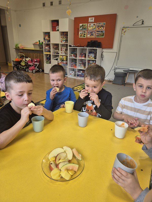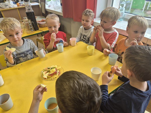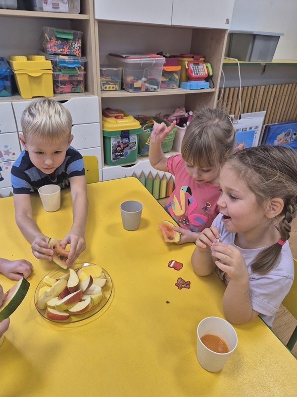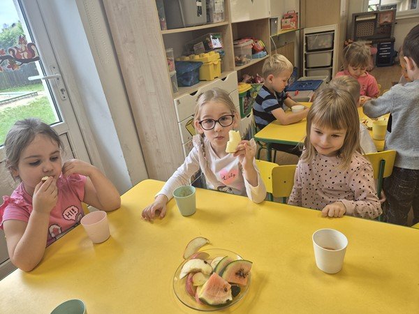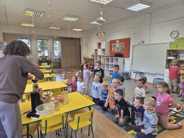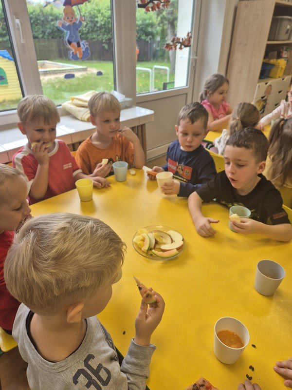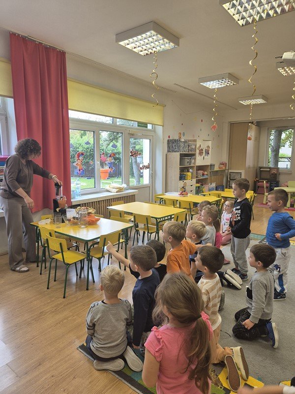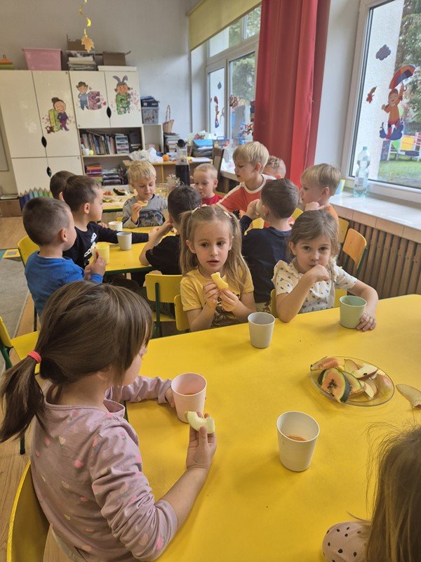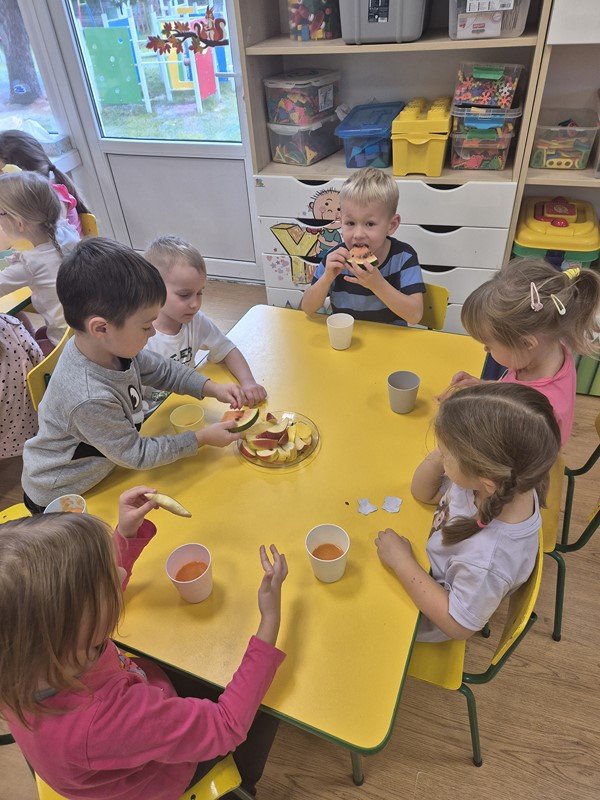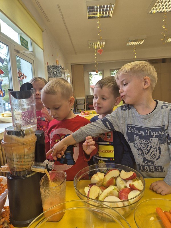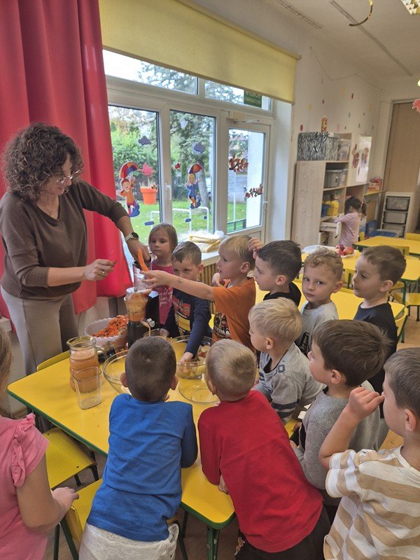 Dzień owoców i warzyw to dzień poświęcony promowaniu zdrowego odżywiania. Dzieci z gupy Motylki tego dnia robiły sok owocowo-warzywny, następnie degustowały różne owoce i warzywa. Była też okazja poznania miejsca, z którego te produkty pochodzą oraz jak rosną.