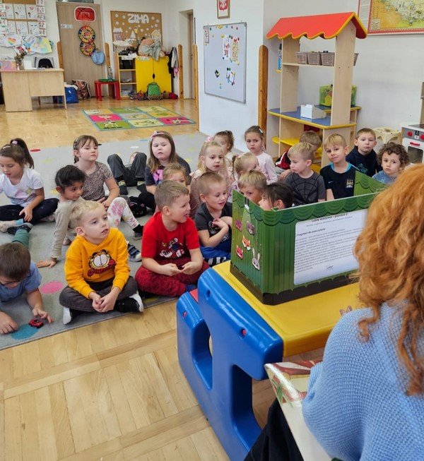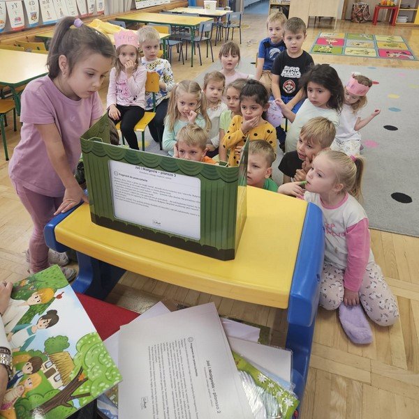 W ostatnim tygodniu nasze 5-latki z wielkim zainteresowaniem i skupieniem wysłuchały baśni, legend oraz przygód Treflika i Treflinki przedstawionych troszeczkę w innej formie - mianowicie zapoznaliśmy się z japońską sztuką czytania obrazów, czyli teatrem Kamishibai.