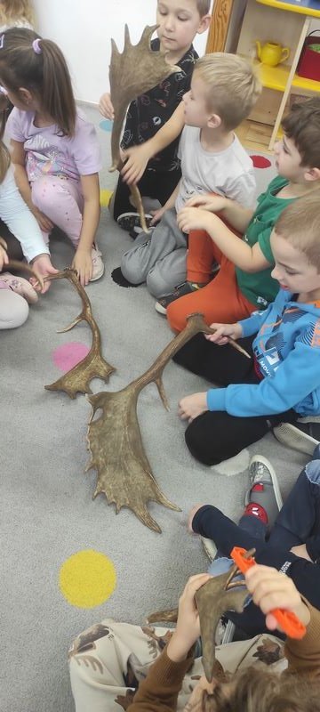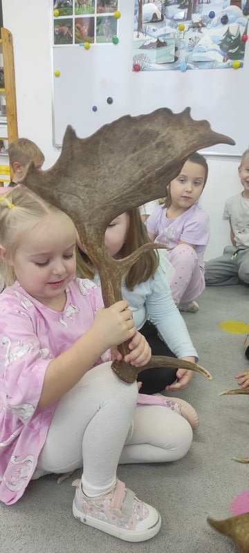 Podsumowując nasz tydzień, Skrzaty miały możliwość obejrzenia poroża danieli, co wzbudziło w nich ogromne zainteresowanie.