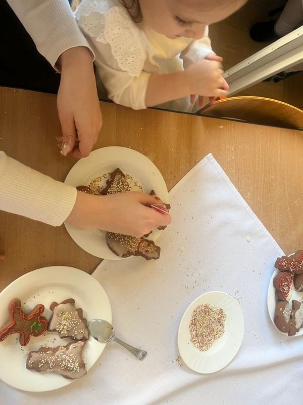 Najpierw gwiazdeczki zaśnieżyły świat, potem dzieci ubrały choinkę, znalazły świąteczną gwiazdkę, zagrały kolędę na instrumentach, a na koniec dekorowały pierniczki, a wszystko to przy ogromnym wsparciu rodziców. Była super zabawa.