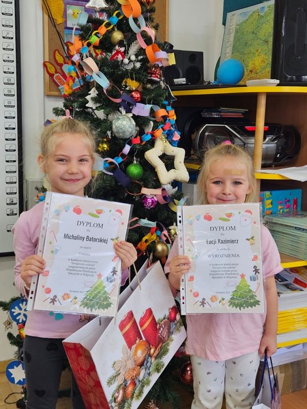 Michasia i Łucja z grupy SKRZATY wyróżnione w konkursie "Świąteczna ozdoba"