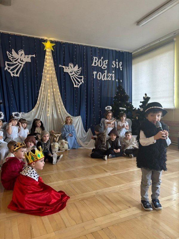 Dnia 17 grudnia 2025 roku przedszkolaki z grupy 4-latków wystawiły jasełka. Dzieci przedstawiły historię narodzenia Pana Jezusa w tradycyjny sposób, wcielając się w role: Maryi, Józefa, aniołów, pasterzy i królów.