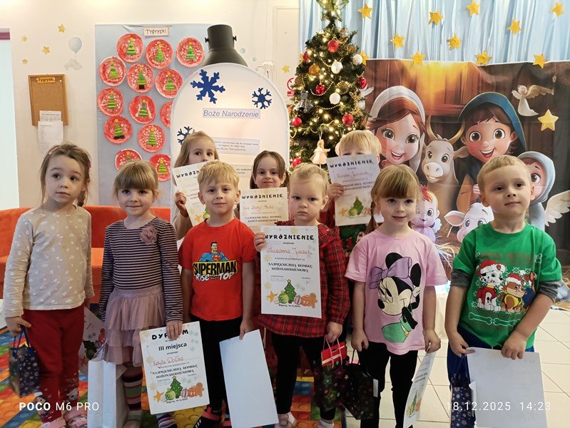 W naszym przedszkolu odbył się konkurs plastyczny pt. „Najpiękniejsza ozdoba bożonarodzeniowa”. Przedszkolaki wykazali się dużą kreatywnością i pomysłowością, tworząc barwne oraz oryginalne prace z różnych materiałów.