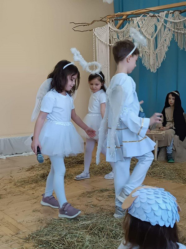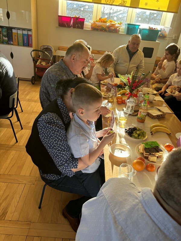 Z tej wyjątkowej okazji przedszkolaki zaprezentowały jasełka pt. „Ach, co za noc” oraz zaśpiewały piękną, wzruszającą piosenkę dedykowaną babciom i dziadkom. Po części artystycznej odbył się poczęstunek, a goście otrzymali drobne upominki w postaci kalendarzy.