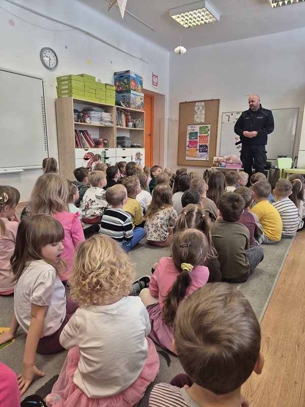 Spotkanie z policjantem, które miało miejsce w naszym przedszkolu, było doskonałą okazją do tego, aby porozmawiać z dziećmi o bezpieczeństwie w czasie zbliżających się ferii zimowych.