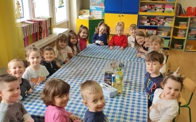 Podczas zajęć dzieci z grupy „Jeżyki” eksperymentowały, a głównym bohaterem wspomnianych eksperymentów była – WODA. Sprawdzaliśmy, co się rozpuszcza w wodzie, barwiliśmy ją na podstawowe kolory, a później mieszaliśmy je sprawdzając jaki kolor uzyskamy, sprawdzaliśmy co się stanie, jeśli do oleju dolejemy wodę i wiele, wiele innych. Na koniec stworzyliśmy swoją własną chmurę, a następnie sprawiliśmy, że „spadł z niej deszcz”. Dzieci bardzo chętnie uczestniczyły w zajęciach jednocześnie czerpiąc z nich przyjemność.