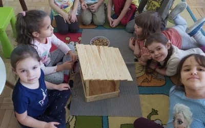 Dzieci z grupy Tęczowe Rybki biorą udział w projekcie "Ekokulturalne Przedszkole", który ma na celu promowanie ekokultury wśród przedszkolaków. W projekcie występują trzy kategorie: Ekoplastyka - planowanie ekologicznych prac plastycznych, Ekoprzestrzeń - tworzenie otoczenia przyjaznego środowisku, Ekokultura - nawiązywanie współpracy z rodzicami na rzecz środowiska. Rybki obecnie realizują trzecią kategorię i do współpracy zaprosiliśmy jednego z tatusiów, który wraz z synkiem Wojtusiem wykonali przepiękny karmnik, dzięki któremu możemy poszerzać ekokulturalne zachowania dokarmiajac ptaki. Dziękujemy.