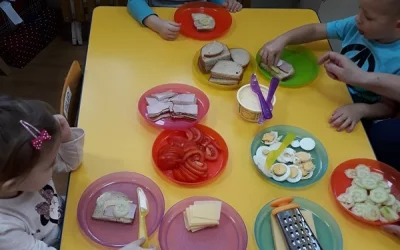 "Kanapki sami chcemy przygotować. Z jajkiem i ogorkiem bedą nam smakować" -śpiewały w tym tygodniu Tygryski, a w dowód tego, wcieliły się w role małych kucharzy, wykonując samodzielnie kanapki. Po starannym umyciu rączek przedszkolaki przystąpiły do pracy.