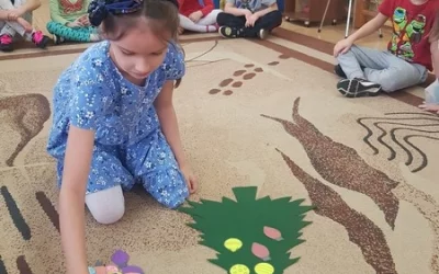 Na zajęciach języka angielskiego tuż przed świętami dzieci z grupy starszych miały okazję ubrać choinkę powtarzając przy tym słownictwo poznane na wcześniejszych zajęciach.