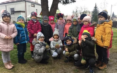 Dzieci z naszego przedszkola pamiętają zimą o zwierzętach. Tym razem postanowiły zawiesić na gałązkach w ogrodzie przedszkolnym ziarenka zatopione w tłuszczu, które są ulubionym smakołykiem zaglądających do nas ptaszków. A wszystko to dzięki współpracy z naszym nadleśnictwem. DZIĘKUJEMY!!!