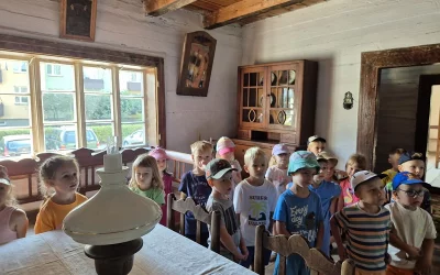 Korzystając z pięknej pogody dzieci z grupy Motylki wybrały się do Zagrody Sitarskiej. Przedszkolaki zwiedziły dom sitarza oraz inne zabudowania, które znajdują się na terenie skansenu i tworzą dawne gospodarstwo. Dzieci wzięły również udział w warsztatach łupienia kaszy, maglowania i robienia masła. Na koniec w otoczeniu pięknych drzew wszyscy ze smakiem zjedli kanapeczki ze świeżo zrobionym masełkiem.