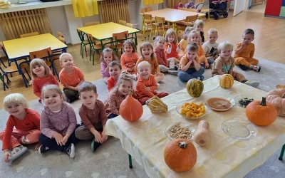 Dzisiaj w grupie "Motylki" królowała dynia Dana. Było smacznie, wesoło i pomarańczowo, a to za sprawą udziału w projekcie edukacyjnym promującym zdrowe nawyki żywieniowe "Witaminki".