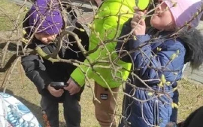 SKRZATY w poszukiwaniu wiosny. Zajęcia praktyczne starszaków - zakładanie ogródka na parapecie, dzieci wysiadły nasionka kwiatów oraz wysadziły cebulki.