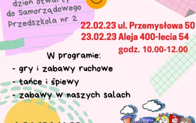 OFERTA NASZEGO PRZEDSZKOLA Już od września 2023r. Przedszkole czynne dłużej !!! w godz. 6.30 – 17.30 Ciekawsze zajęcia dodatkowe: Programowanie Angielski Rytmika Tańce, zumba Gimnastyka korekcyjna Religia Zajęcia szachowe Sensoplastyka Możliwość zorganizowania: Zajęcia Karate Inne w zależności od oczekiwań dzieci W naszym przedszkolu zatrudniamy specjalistów: psychologa, pedagoga specjalnego, logopedę, terapeutę pedagogicznego, którzy udzielają wsparcia dzieciom i rodzicom. Każdy dzień nieobecności dziecka odliczamy ! Mamy do dyspozycji piękny i bogato wyposażony plac zabaw!! Polecamy pyszne obiady z przedszkolnej kuchni !!!