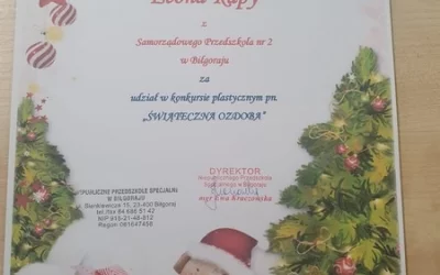Laureaci konkursu plastycznego pt. ,,Swiateczna Ozdoba.'' zorganizowanego przez Niepubliczne Przedszkole Specjalne w Bilgoraju