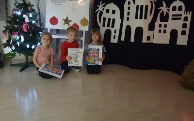 Grupa Motylki wysłała kartkę bożonarodzeniową do grupy Mądre Sowy z przedszkola w Gorlicach. Dzieci napisały piękne życzenia po angielsku i ozdobiły kartkę. Z niecierpliwością czekały na kartkę od Mądrych Sów. Motylki otworzyły kopertę i przeczytały piękne życzenia.
