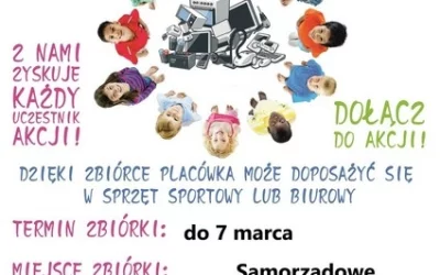 Nasze przedszkole po raz kolejny przystąpiło do projektu ekologicznego i edukacyjnego „Wszystkie dzieci zbierają elektrośmieci”, której celem jest podniesienie świadomości ekologicznej wśród dzieci i młodzieży oraz zwrócenie uwagi na prawidłowe zagospodarowanie odpadami. Serdecznie zapraszamy wszystkich rodziców, firmy prywatne, instytucje oraz wszystkich sympatyków przedszkola do zbiórki elektrośmieci tj. wszystko co jest na prąd lub baterie, np. sprzęt komputerowy, biurowy, rtv, agd, itp. Akcja trwa do 7 marca 2022r. Sprzęty prosimy składać w wyznaczone miejsca: teren przedszkolny: Al. 400 – lecia 54 oraz przy filii przedszkola: ul. Przemysłowa 50 W zamian za przyniesiony zużyty sprzęt elektroniczny i elektryczny nasza placówka otrzyma bon, który wykorzysta na nagrody rzeczowe w postaci sprzętu sportowego lub materiałów biurowych. Jedynym warunkiem jest mobilizacja do działania, porządki domowe i chęci! Poniżej dokładna lista sprzętu podlegającego zbiórce ,,Im więcej sprzętu uzbieramy, tym wyższy bon otrzymamy!!!’’