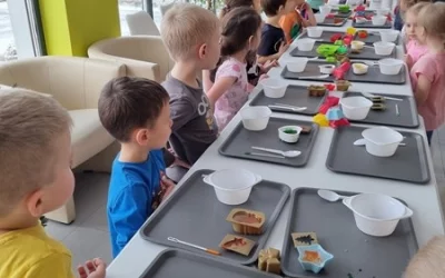Grupa "Motylki" uczestniczyła w warsztatach "Kolorowe mydełka", które były zorganizowane w Powerlandzie. Dzieci miały okazję poznać sposób powstawania mydełka, własnoręcznie wykonując je i nadając im niepowtarzalny kształt, kolor i zapach. Niespodzianką były pokazy baniek mydlanych. Każdy przedszkolak wykazał się odwagą, wchodząc do takiej bańki. Będąc w Powerlandzie, skorzystaliśmy także z sali zabaw, pokonując labirynty, zjerzdżalnie i zanurzając się w basenach piłeczkowych.