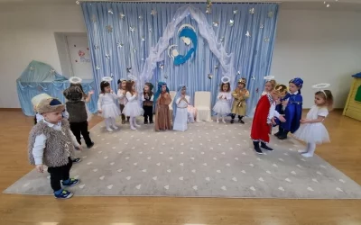 Dnia 17 grudnia dzieci z grupy "Misie" postanowiły wprowadzić swoich rodziców w atmosferę Świąt Bożego Narodzenia. Przygotowały pod okiem swoich Pań pierwsze przedszkolne Jasełka, do których pilnie się przygotowywały. Całe świąteczne przestawienie zostało nagrane i wysłane do rodziców. Wyszło pięknie!!