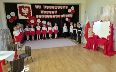 10 listopada w naszym przedszkolu dzieci z grupy Jeżyki przygotowały część artystyczną z okazji Święta Odzyskania Niepodległości przez Polskę. Piękna dekoracja, montaż słowno-muzyczny i tańce narodowe wywołały w nas wiele emocji i wzruszeń. Na koniec wszyscy odśpiewali cztery zwrotki hymnu. Jesteśmy dumni, że jesteśmy Polakami!!!